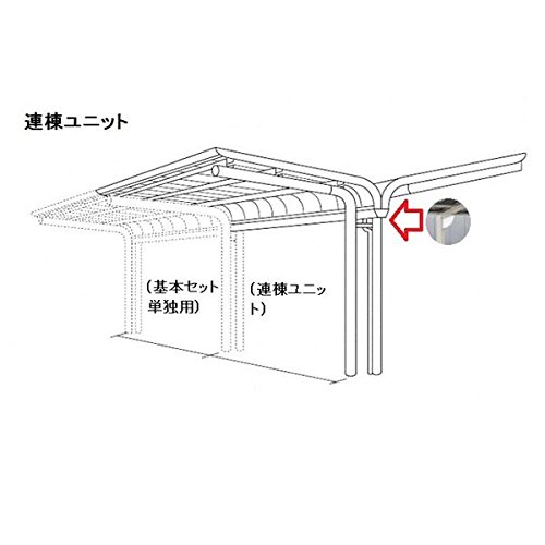 四国化成のサイクルポート V-R オープンタイプは、照明付きでY合掌タイプの連棟ユニットです。積雪20cm対応、標準高。屋根材はアルミ押出形材(LVCL-4430)。連棟ユニット施工には基本セットの別途購入が必要です。