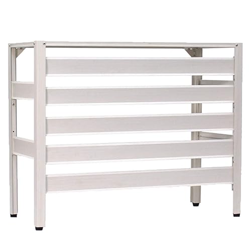 ALMAXのエアコン室外機カバーは、アルミ製で耐久性抜群。幅90cm、奥行38cm、高さ73cmのサイズで、木目調ホワイトのデザインが特徴。2023年度グッドデザイン賞受賞商品で、実用新案登録済です。