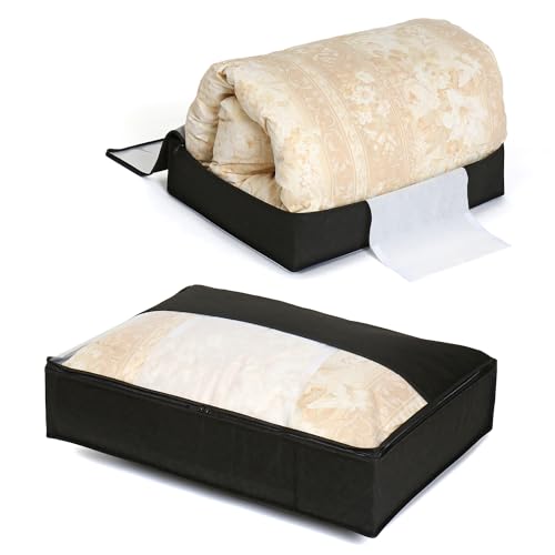 アストロの活性炭消臭羽毛布団収納ケースは、シングルサイズ用の通気性良い不織布製です。薄型でスリム、透明窓付きで中身が確認でき、押さえベルトでコンパクトに収納可能。