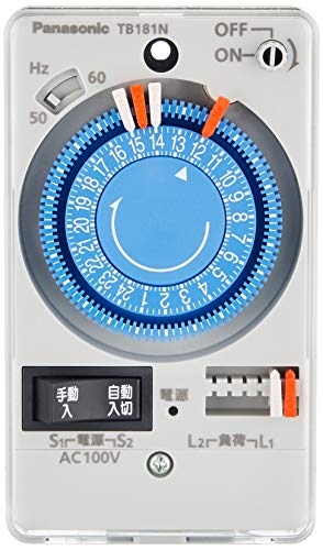 パナソニック TB181Nは、交流モータ式のボックス型タイムスイッチです。AC100Vに対応し、24時間で1回路の制御が可能です。省エネや自動化に適しています。