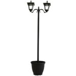 リビングアウトの植木鉢付きソーラー街灯は、ブラックのスタイリッシュな2灯タイプ。エコなソーラー技術を活用し、夜間は自動で点灯。おしゃれにお庭や玄関を演出し、植物を育てるスペースも提供します。