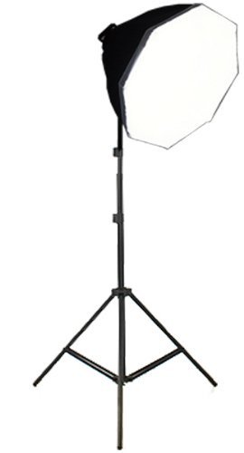 ottostyle.jpの5灯ソケット写真照明キットは、ソフトボックスとライトスタンドを含む撮影機材です。簡易スタジオのセットアップに最適で、明るく均一な照明を提供します。