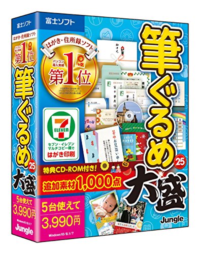 筆ぐるめ25 大盛は、宛名印刷やはがき作成が簡単に行えるソフトウェアで、多彩なテンプレートを搭載。豊富なデザインや文字の編集機能を提供し、年賀状や各種お知らせに最適です。