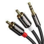 UGREENの3.5mmステレオミニプラグとRCA赤白プラグの変換オーディオケーブル。端末や機器に対応し、1mの長さで便利な使用が可能です。