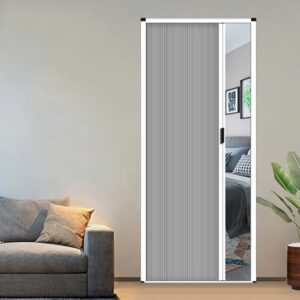 SMARTSTANDARD 2つ折りドア、28インチ x 80-3/4インチの開口部用、強化ガラス製クローゼット折りたたみ式納屋のドア、ハードウェアキット付き、防水PVC表面、取り付け簡単、ホワイト