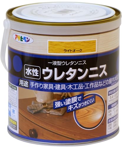 アサヒペン 水性ウレタンニス 0.7L ライトオークは、木材の美しさを引き立てる透明な仕上げ剤です。水性で環境にも優しく、乾燥が早いため扱いやすい。耐久性があり、屋内外での使用に最適です。