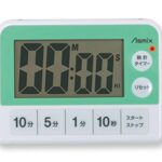 アスカ キッチンタイマー KT118は、防滴・耐衝撃設計で頑丈です。スタンド付きで、マグネットでの取り付けも可能。2段階音量調節機能を搭載し、ストラップ穴もあり、使い勝手抜群のグリーンカラーのタイマーです。