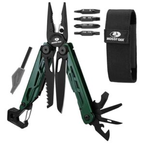MOSSY OAK 多機能ペンチ 27-in-1 アウトドアマルチツール 多機能ツール ナイフ アウトドア 折り畳み式 ロック機能搭載 呼子 火打ち棒 ノコギリ プライヤー ドライバー 缶切り ビット付属 野外活動 登山 釣り 防災グッズ キャンプ 【ポーチ付き】 グリーン