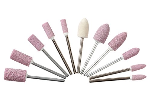 UID 11本軸付砥石セットは、2.35mm軸対応のミニルーター用で、PROXXON、DREMEL、RYOBIなど多くのブランドに対応しています。高品質なバフ付きで仕上げ作業に最適です。