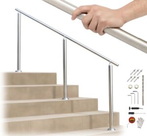 PETOOP 180x86cm 手すり 手摺 304ステンレス鋼採用 屋外 屋内 階段 DIY 玄関 角度調整可能 ステンレス鋼 防錆 耐久性手すり グリップ直径32ミリ 160cm/180cm/200cm/220cm/240cm (シルバー, 180cm)