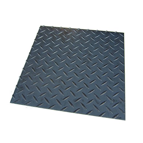 縞鋼板 生地(黒皮皮膜) CPL 板厚 3.2mm、縦300mm×横300mmの一般鋼材です。滑り止め効果があり、敷鉄板や床材、ガレージDIYに最適です。