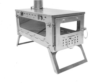 ノーブランド品 ポータブル キャンプ用 薪ストーブ, ステンレス製, 耐熱ガラス窓付き, 煙突ガード搭載, バックパッキング ホットテント アウトドア用 (煙突長さ:3m)