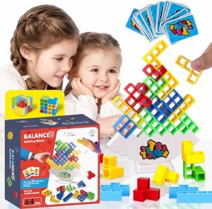 YONGDING バランスツインタワー ブロック 立体ブロック バランスゲーム 知育玩具 バランスタワー ブロック パズル テーブルゲーム Tetra Towerスタックゲーム 建築バランスボードゲーム 対戦テーブルゲーム 脳トレ 積み木 誕生日プレゼント クリスマスプレゼント ファミリーゲームに最適