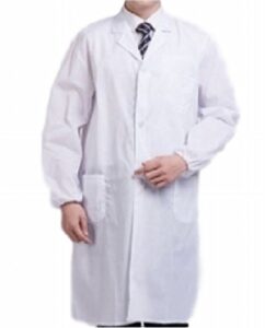 [INEOUT] 白衣 メンズ用 男性ドクター 医師 診察衣 長袖 シングル ボタン ロング丈 ホワイト 両脇ポケット付き 医療 実験衣 (M)