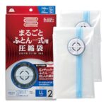 アール(R) まるごとふとん一式 圧縮袋は、バルブ式で繰り返し使用可能な収納袋です。大きな布団も簡単に収納でき、透明無地で見やすい150×100cmサイズが2枚入り。