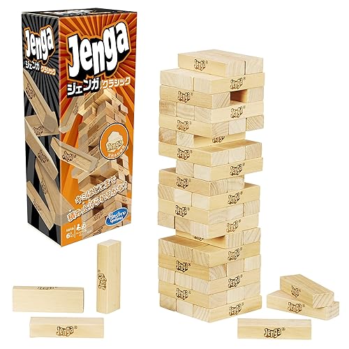 ハズブロのジェンガは、天然木を使用したスタッキングタワーゲームです。1人以上で楽しめ、6歳以上の子供にぴったりのファミリー向けパーティーゲームです。