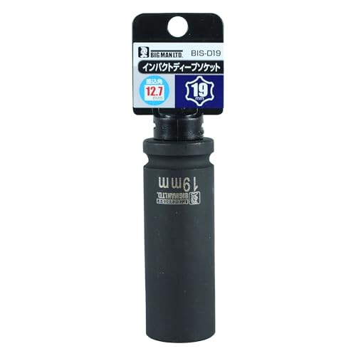 ビッグマンのインパクトディープソケットBIS-D19は、19mmサイズで頑丈なスチール製。高トルク対応の仕様で、インパクトレンチや電動工具に最適。耐久性が高く、プロの現場での使用にも対応しています。