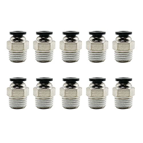 RUOFENG ペッフチューブ用クイック継手コネクタ。1/4 Pt雄ネジ、6mmストレート型。空気圧システムに適し、簡単に接続・切断が可能で、耐久性も高い製品です。10個入り。