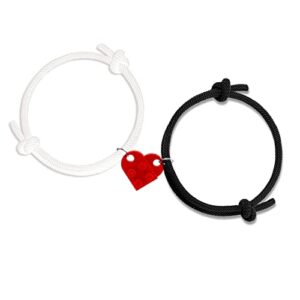 Caiyao 2個 ハートブリックマッチングストレッチコードブレスレット カップル レディース 親友 ハートブロック 友情 ストリングブレスレット 彼/彼女/ガールフレンド/バレンタインデー/誕生日/ジュエリーギフト, 樹脂, レンガ