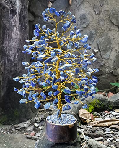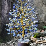 Croconのラピスラズリ風水盆栽は、ヒーリングツリーとしてチャクラバランスをサポートし、EMF保護を提供します。サイズは10インチ、ゴールデンワイヤー仕上げのスピリチュアルホームデコレーションです。