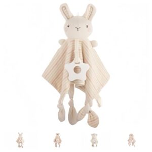 [sandqvipa] 赤ちゃん・幼児のおもちゃ赤ちゃんおしゃぶりタオル 動物デザイン うさぎ ライオン ぞう くま 柔らかく快適 引っ張ったり噛んだりしても安心感 有機コットン 洗濯可能 色あせにくい 多機能 吊りひも付き 多用途 防静電気 通気性良好 (うさぎ,オーガニックコットンの歯固め用布)