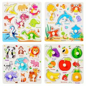 木製パズル 型はめパズル 子供 かたはめパズル 赤ちゃん モンテッソーリ 1 2 3 歳 幼児早期開発 形合わせ 形認識 色認知 色彩感覚 脳トレ おもちゃ 幼稚園 親子交流促進 誕生日 贈り物 水果/动物/海洋生物/恐竜