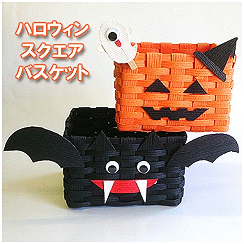 紙バンド手芸用ホビーテープのトライアルキット、ハロウィンコンビスクェアバスケット。様々な色合いのテープが含まれ、初心者でも簡単に楽しめるキットです。ハロウィンのデコレーションに最適。
