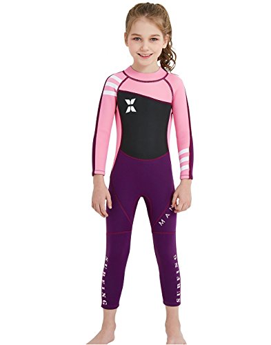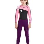 子ども用ウェットスーツ、厚さ2.5mmのフルスーツ。長袖デザインでマリンスポーツやダイビングに最適。女の子向けのXLサイズ、可愛らしいピンク色が特徴です。