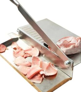 AIZELAISU ミートスライサー スライサー 手動 押切包丁 肉切り機 骨切り包丁 骨切断機 刃長さ38cm 大型 ステンレス鋼製 骨切り 冷凍肉 薬種 野菜 魚 ベーコン ハム お餅 肉類 もち 漢方薬 手動式 家庭用 業務用 調理器具 卓上型