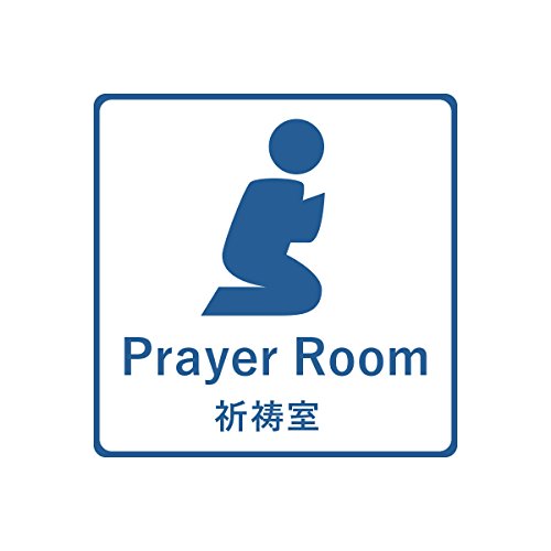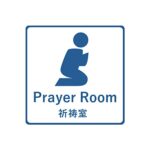 Biijo祈祷室のステッカーは、外国人観光客向けにプレイヤールームを4ヶ国語で案内。サイズは12cm×12cm、ホワイトの2ヶ国語表示です。識別と案内がスムーズに行えます。