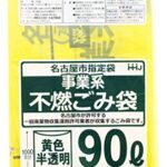 ハウスホールドジャパンのゴミ袋(90L)は名古屋市指定の不燃物用です。黄色の半透明デザインで、10枚入り。耐久性に優れ、事業系ゴミの収納に最適です。