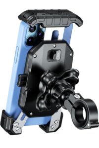 Kaedear(カエディア) バイク スマホホルダー バイク用 携帯ホルダー 振動吸収 マウント 付属 / 厚さ15mmまで, 縦長スマホ, カメラ突き出し,対応/大きめのスマホも脱着スムーズ/中央ボタンパット式/アームロック機構, クイックホールドビートルⅡ/Airアブソーバー KDR-M14CPJ-BK