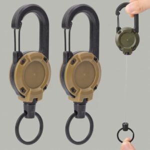 格納式キーチェーン プルバッジ リール マルチツール サバイバル クライミング バックル キーリングバックル アウトドアキャンプ用品用, カーキ-2点, 10*5cm