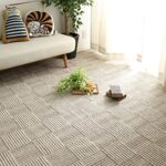 グラムスタイルの洗える江戸間6畳カーペット(261x352cm)は、抗菌・防臭でループパイル仕様。ボーダーデザインで、自由にカット可能な敷き詰めカーペットです。