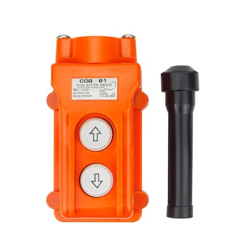 RUOFENGのアップダウンホイストプッシュボタンスイッチCOB-61は、クレーン用のペンダントコントロールステーションで、操作が簡単で耐久性があります。安全な運転をサポートします。