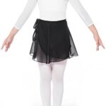 バレエレオタードとシフォンダンススカートのセット。七丈袖メッシュ素材で動きやすく、大人用&ジュニア向け。バレエ、体操、舞台、ヨガ用に最適。サイズ:M(135-160cm)、カラー:黒。