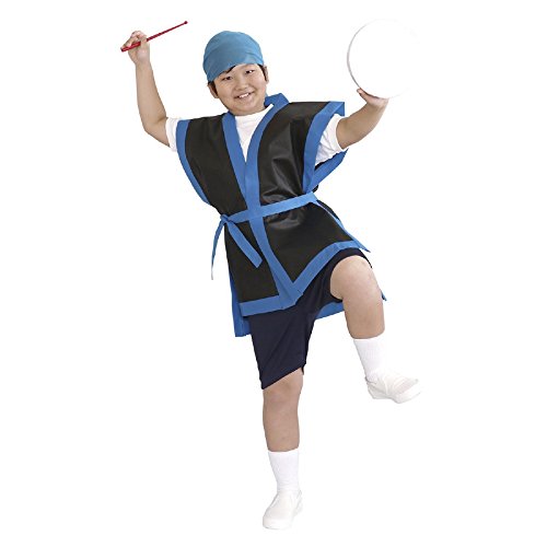[アーテック] 発表会・イベント向けのキッズコスチューム、エイサー打掛(黒・襟青)Sサイズです。小学校中学年から高学年向けで、帯が付いています。