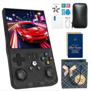 R36MAX 携帯ゲーム機 ポータブルゲーム機 4インチ720×720 IPS HD ハンドヘルドゲームコンソール エミュレーターゲーム機本体 30+レトロゲーム内蔵 RK3326搭載 4000mAh バックキー付 二人プレイ対応 (フロストクリア, 128G)