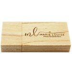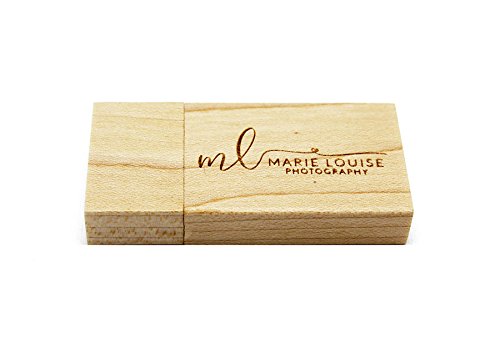 木製ロゴのカスタマイズ可能なUSBフラッシュドライブ。容量は4GBから64GBまで選べるメープルウッド製。写真アルバムの保存に最適!