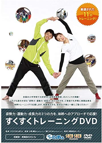 「すくすくトレーニング DVD」は、子供の体幹や姿勢を整え、猫背を矯正するための運動プログラムを提供します。運動能力の改善を目指し、全国の小学校や中学校で活用されています。