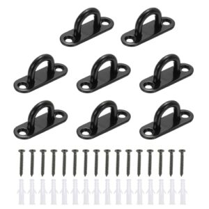 PATIKIL 304ステンレス製パティ オフック8個、丸みを帯びた長方形パッドアイプレート金属壁取り付けUパティ オフック、ロープ、ポスト、列、ライン、バリアー用ネジ付き、黒