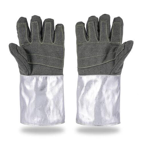 BAOSHISHAN 耐熱グローブ 耐熱手袋 耐温1000度以上 38cm 前酸化繊維 耐火保護手袋 五本指 着脱簡単 焚き火 グローブ ストーブ 溶接 薪ストーブ ダッチオーブン 暖炉 調理 オーブン キャンプアウトドアBBQ 耐炎製品 作業用 シルバー加工 高価買取中