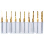 Bestgleの10ピースセット、サイズ0.8mm-3.175mmのタングステンカーバイドエンドミルは、耐久性に優れ、切削や彫刻に最適です。チタンコートでさらに高効率な加工が可能です。