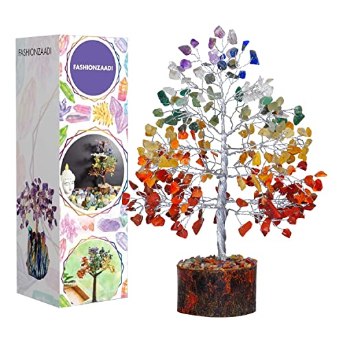 FASHIONZAADIのジェムストーンマネーツリーは、レイキヒーリングやチャクラバランスを促進するためのハンドメイドの盆栽です。スピリチュアルギフトやホームデコレーションに最適で、幸運をもたらします。7つのチャクラを表すシルバーワイヤー付き。