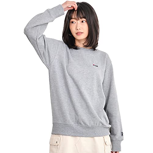フィラのレディースワンポイントロゴ刺繍トレーナーFL1711。色は杢グレーで、日本サイズM相当。カジュアルなデザインで、普段使いやスポーツシーンに最適なアイテムです。