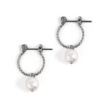 PLUSTERのフープピアスは、チタン製で金属アレルギー対応。美しい一粒のパールがホワイトゴールドカラーで、女性に人気のジュエリー。専用ポーチ付きで、誕生日プレゼントにも最適です。