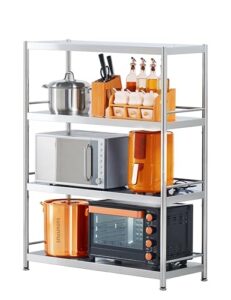 susunnus ステンレス製 オープンシェルフ 幅80 4段 キッチンラック 幅80×奥行40×高さ130cm ガードレール付き ブラッシュパターン 高さ調節可能 サビ防止加工 メタルラック ガレージ棚 高耐久棚 キッチンベーカーラック 工業収納ラック パントリー棚 シルバー (4段シェルフ(ガードレール付き), 幅80)