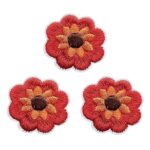 レッドフラワーのワッペン3枚セットです。かわいらしいデザインで、服やバッグのアクセントに最適!アイロン接着で簡単に取り付け可能。サイズはそれぞれ異なります。多彩なコーディネートに活用できます。
