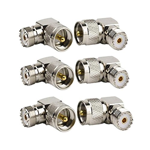 QMseller UHFオスPL259とメスSO239のRF同軸アダプタ。90°直角コネクタで、Fタイプのメスからオスに変換。CBラジオアンテナや無線LANデバイスに最適な6個パックです。