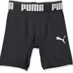 PUMAの着圧インナーパンツスパッツ656334は、キッズ用の秋冬カラーです。カラーはプーマブラック(03)で、サイズ150が展開。快適なフィット感とサポート力が特徴です。スポーツや日常使いに最適!